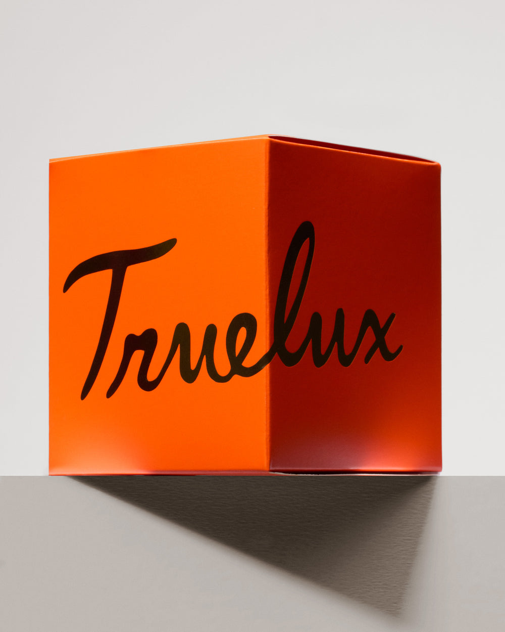 Every Truelux candle arrives in our signature orange box, finished with gold foil. Designed with intention.