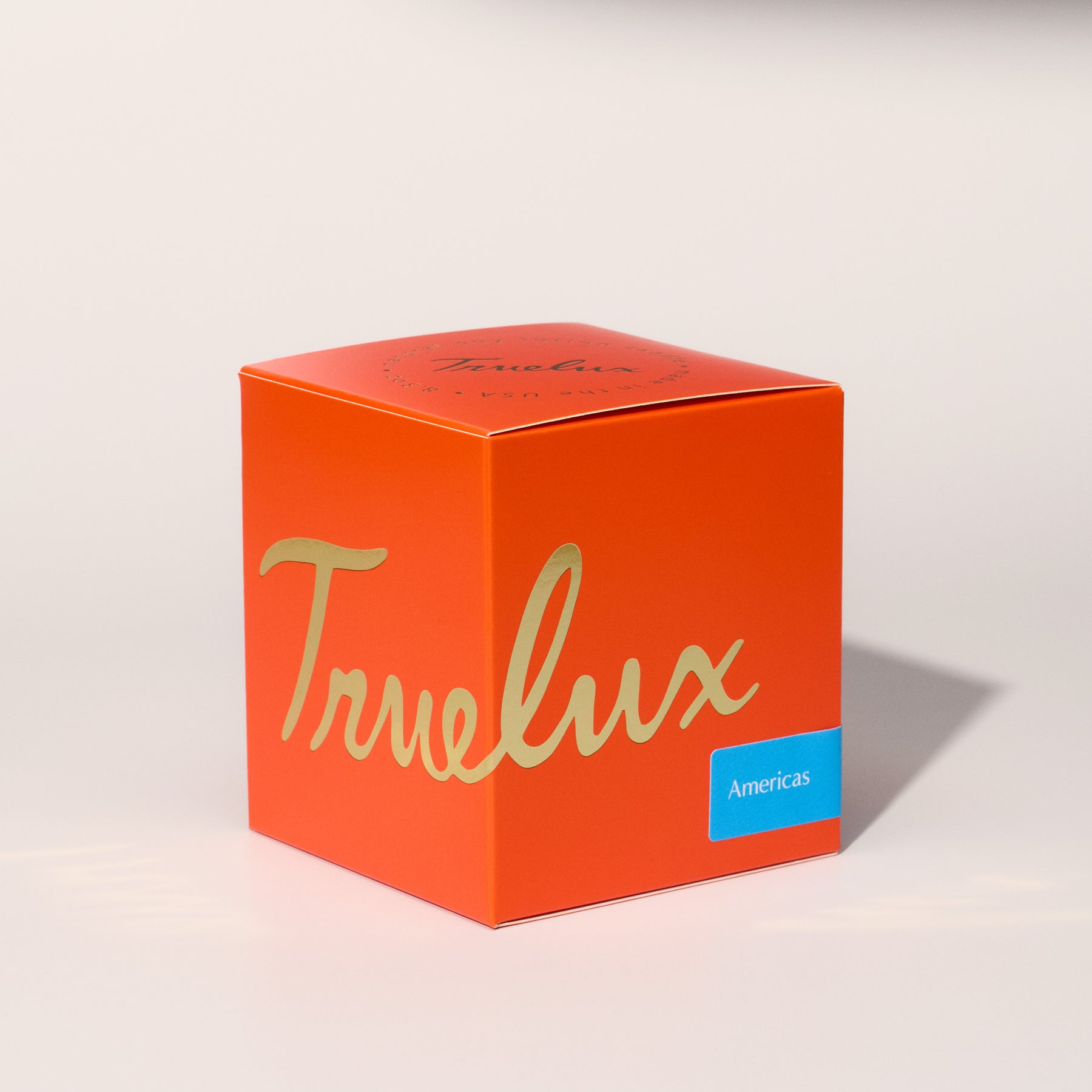 Every Truelux candle arrives in our signature orange box, finished with gold foil. Designed with intention.