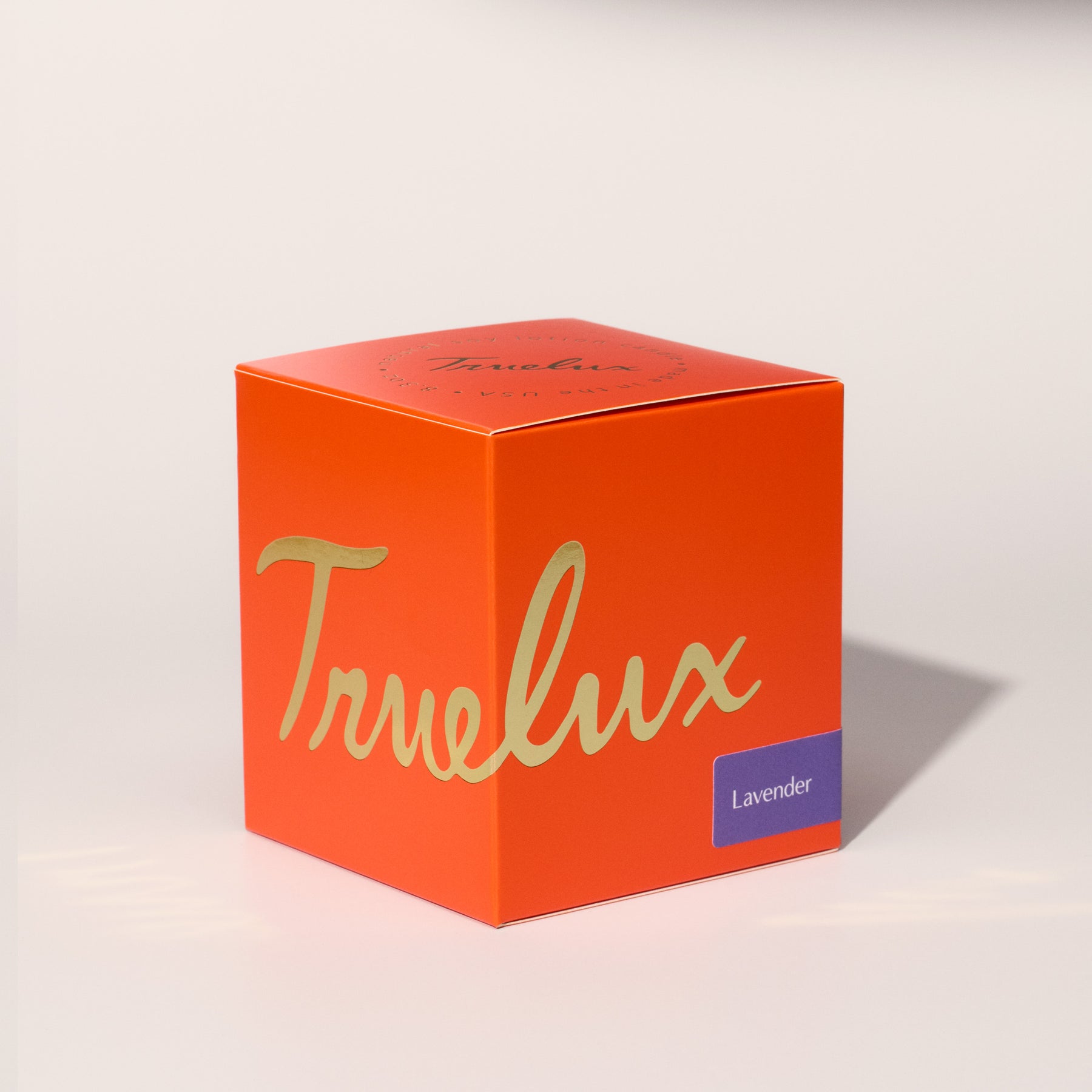 Every Truelux candle arrives in our signature orange box, finished with gold foil. Designed with intention.