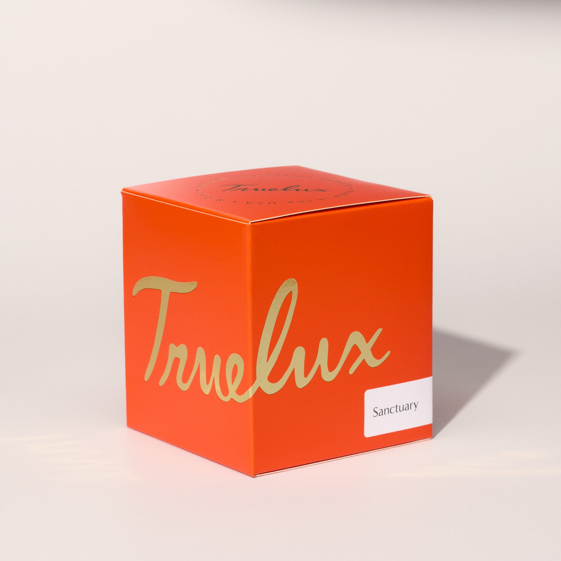 Every Truelux candle arrives in our signature orange box, finished with gold foil. Designed with intention.